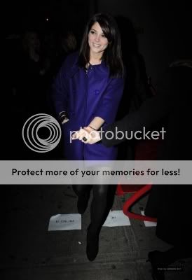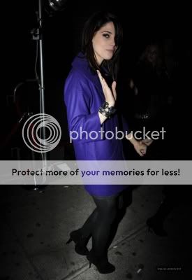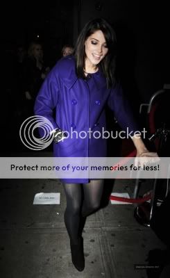 Ashley was spotted on November 24 at the release party for Rihanna's "Rated R" Album. Love the blue coat, really pops.